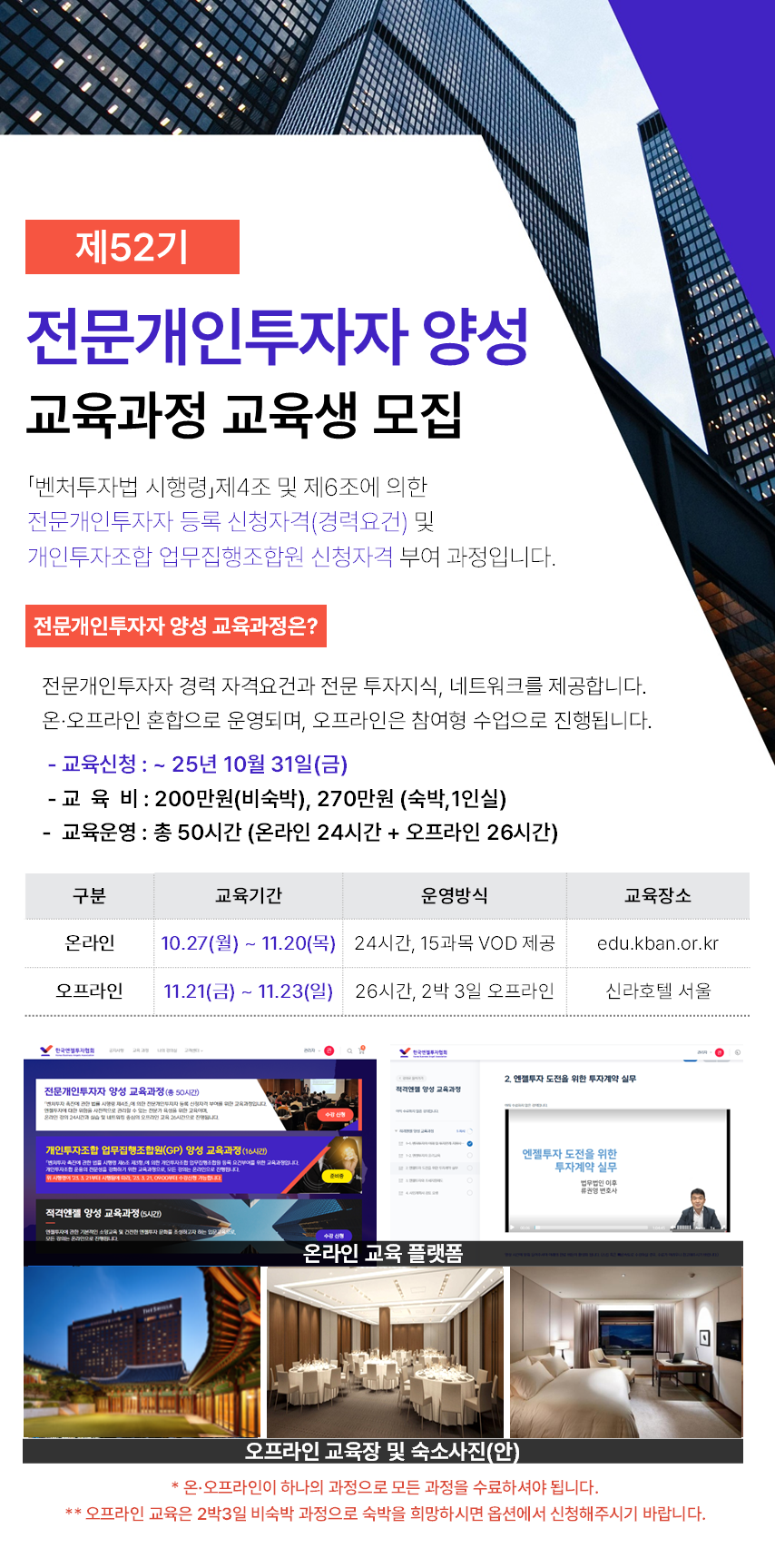 제52기 전문개인투자자 양성 교육과정 수강생을 모집합니다!