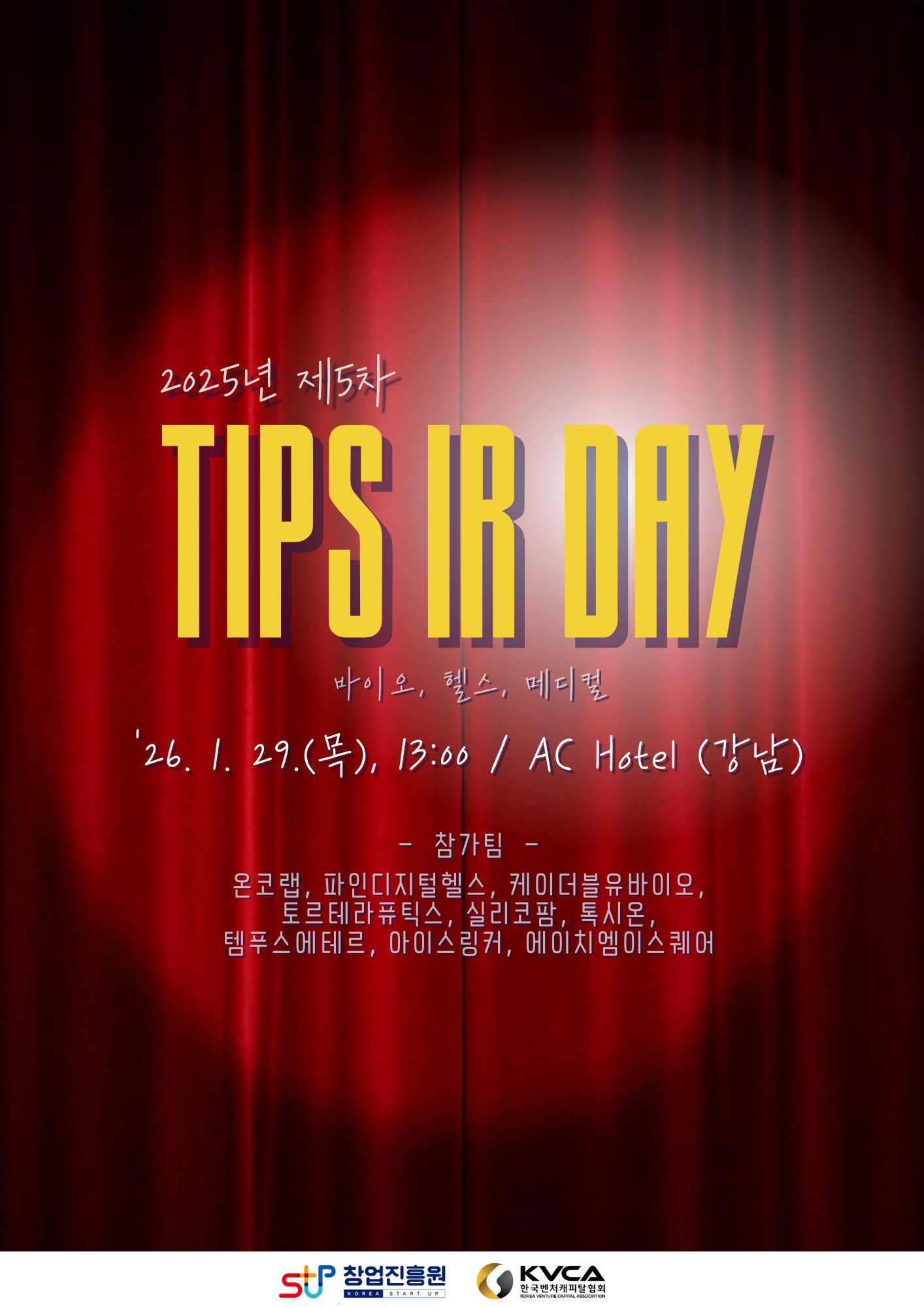 "2025년 팁스(TIPS) 제5차 IR DAY"가 개최 됩니다.