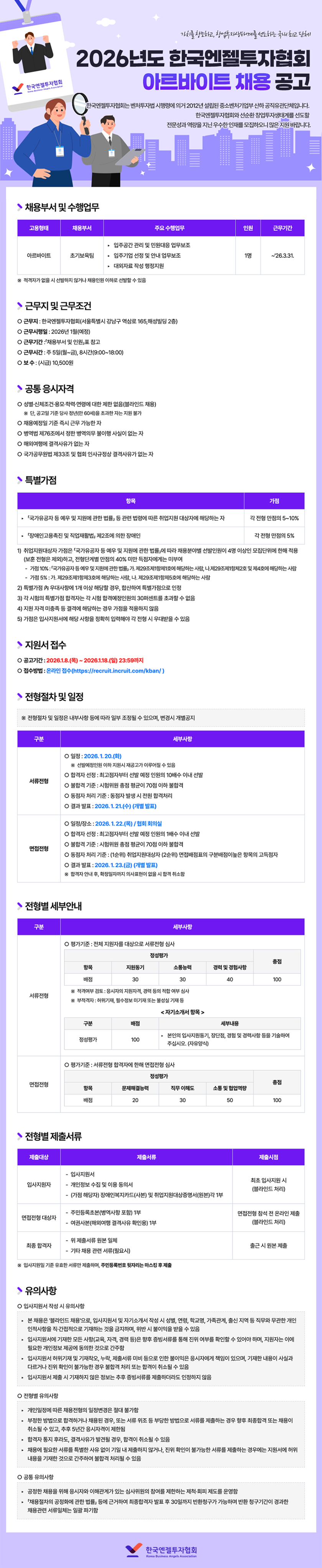 한국엔젤투자협회 2026년도 1월 아르바이트 채용공고